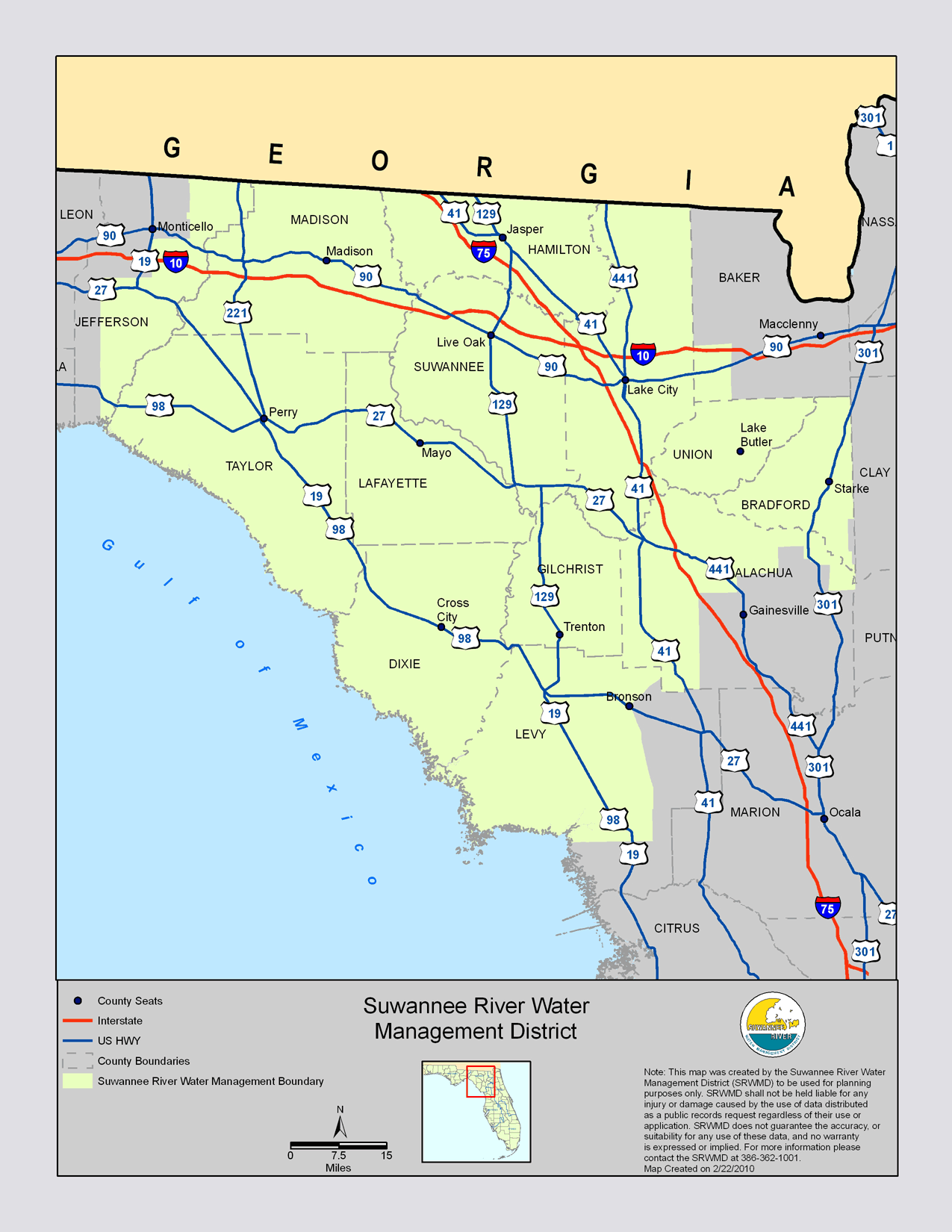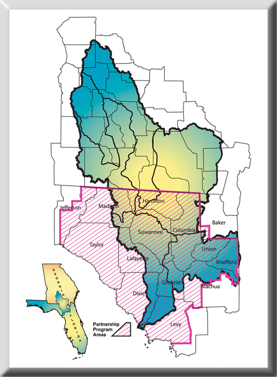 Satellite Imagery showing the entire Suwannee River Basin in Georgia and Florida: GIF Format l PDF Format